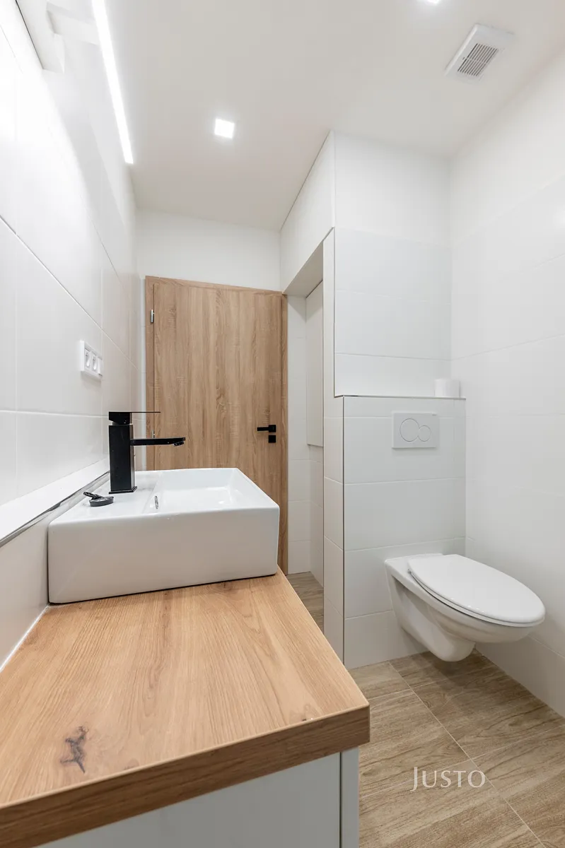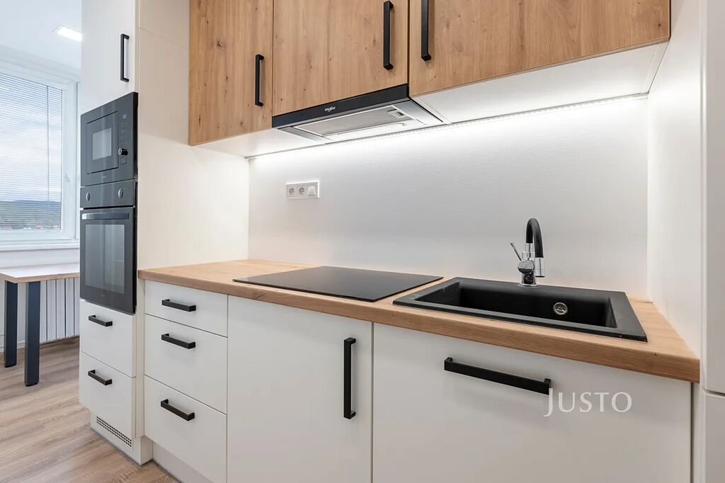 Vše laděno v příjemných neutrálních tónech s důrazem na funkčnost a čistý design. Plastová okna a zateplení budovy zajišťují nízké náklady na bydlení, energetická třída C – úsporná.