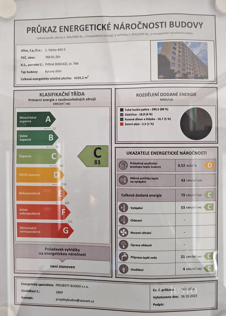 Ukazatel energetické náročnosti | 83 kWh/m2 za rok |