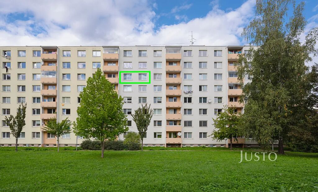 Dispozice bytu nabízí praktické rozdělení místností s dostatkem úložného prostoru, součástí je také sklep o ploše 2 m².