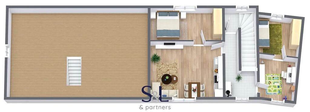 Pozemek o celkové výměře 547 m² zahrnuje také zahradu za domem o rozloze 257 m² – ideální jako zázemí, relaxační část nebo parkovací plocha.