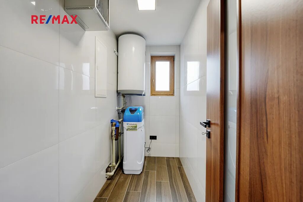 Rodinný dům je připojen k elektřině, voda je z vlastního vrtu a kanalizace řešena jímkou.