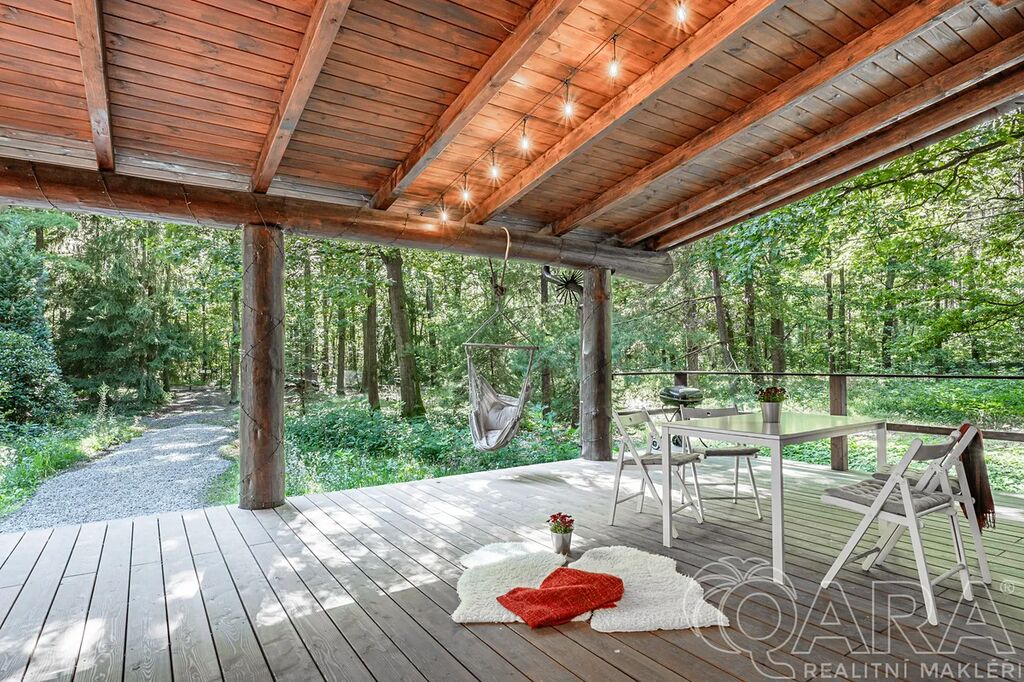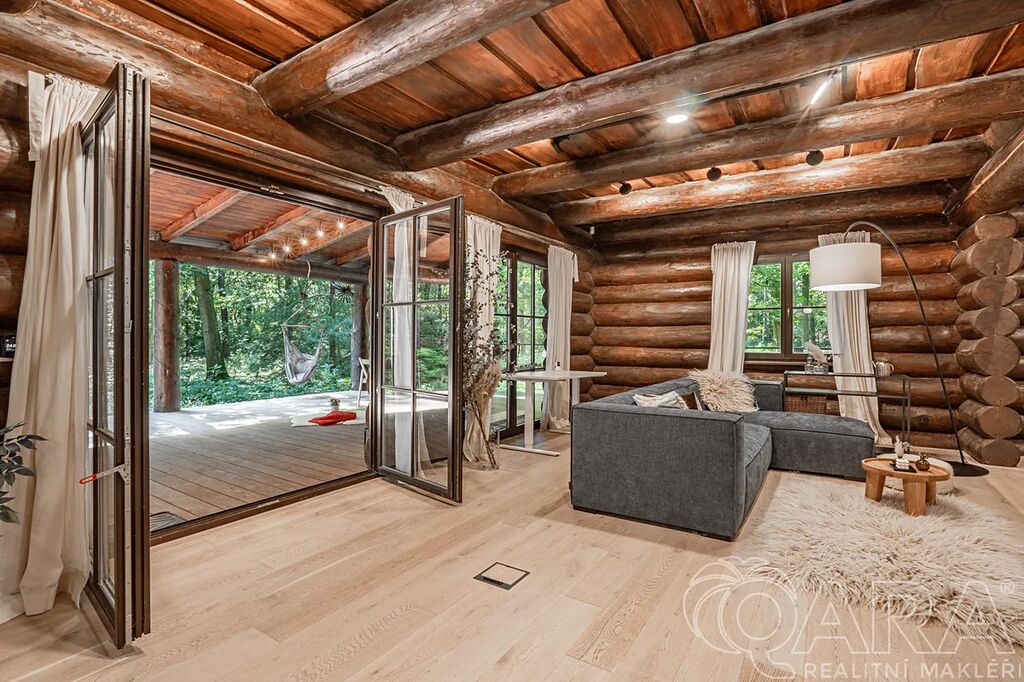 Představte si ráno, kdy otevřete dveře a vstoupíte přímo do lesa, kde je slyšet jen zpěv ptáků a šumění dubových korun. Vůně dřeva ze srubu a krbu se propojuje s vůní přírody, kterou máte doslova na dosah ruky. Tento moderní srub, postavený s důrazem na detail a kvalitu, nabízí nejen domov, ale i životní styl. Luxusní interiér, nejmodernější technologie a velkorysý prostor zde tvoří harmonii s okolní přírodou. Každý kout domu byl navržen tak, aby poskytoval pohodlí, eleganci i teplo domova – a to vše pouhých dvacet minut od Prahy.