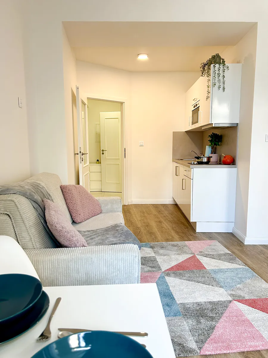 Byt o dispozici 1+kk je plně zařízen a připraven k okamžitému nastěhování. Součástí je kuchyňská linka včetně vestavných spotřebičů, pohodlný rozkládací gauč, jídelní stůl se židlemi, postel, úložné prostory a koupelna se sprchovým koutem. Interiér byl navržen s důrazem na funkčnost a nadčasový design.