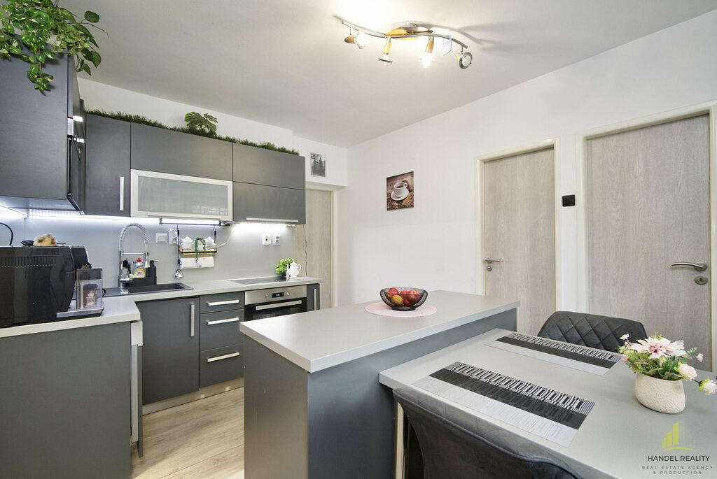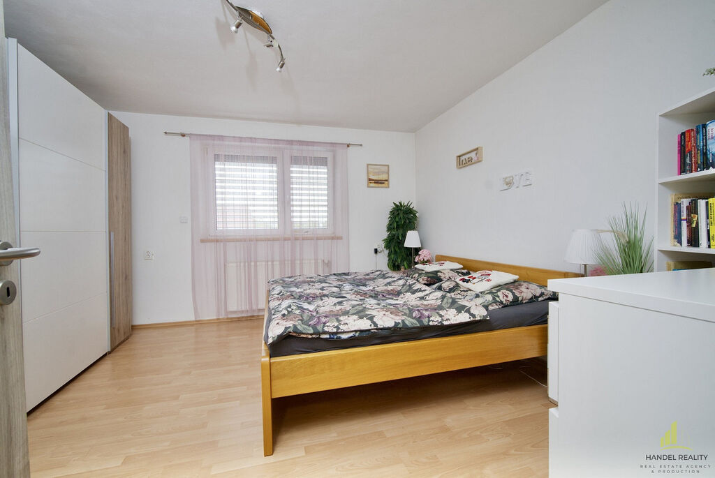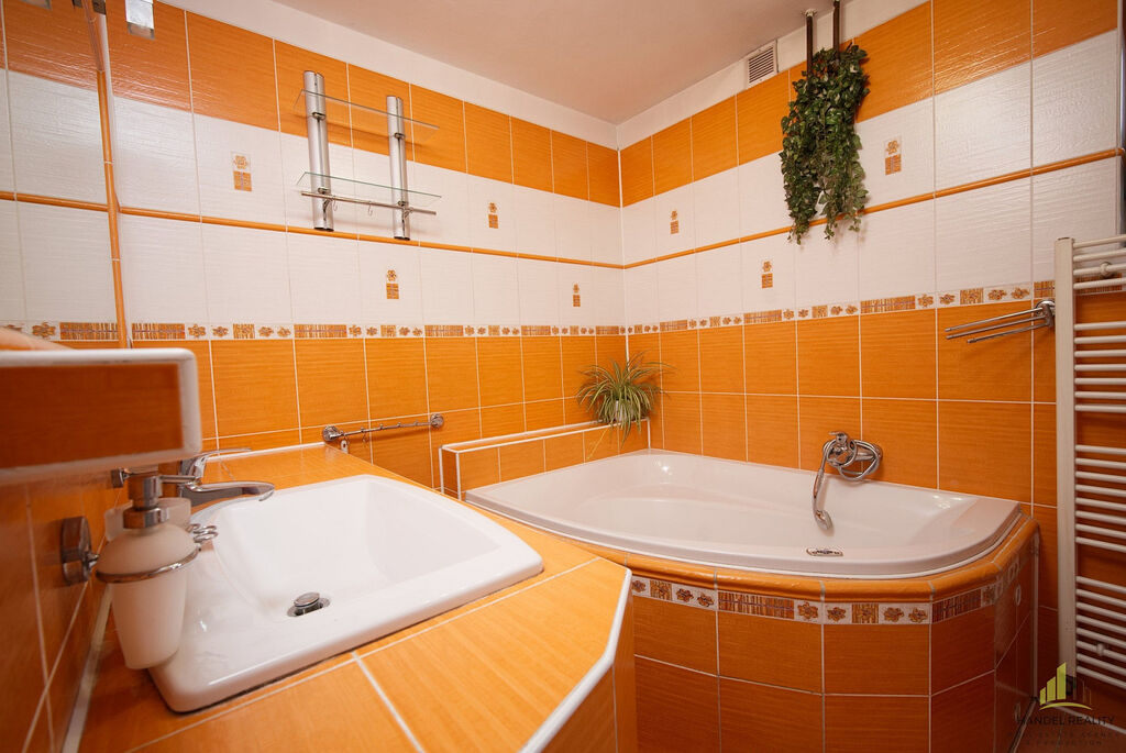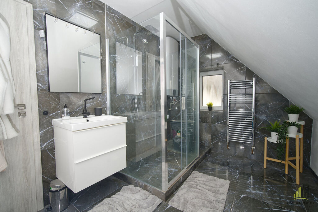 • V přízemí se nachází obývací pokoj, samostatná moderní kuchyně, ložnice, koupelna s masážní vanou a sprchovým koutem a samostatné WC.