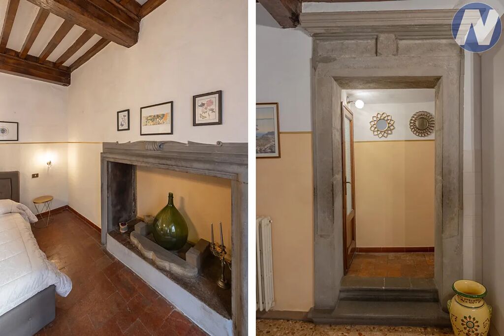 Tento krásný apartmán o užitné ploše 65 m² se nachází v prvním patře. Jeho interiér je dokonalou ukázkou toho, jak se historický šarm dá propojit s moderním stylem. Vstup do obývací části zdobí okouzlující historický kamenný portál a celému prostoru dominuje tradiční krb. Z obývacího pokoje se plynule přechází do jídelny s kuchyňským koutem, které jsou ideální pro přípravu toskánských specialit. Prostorná ložnice s dalším krbem a moderní koupelna poskytují veškeré pohodlí.
