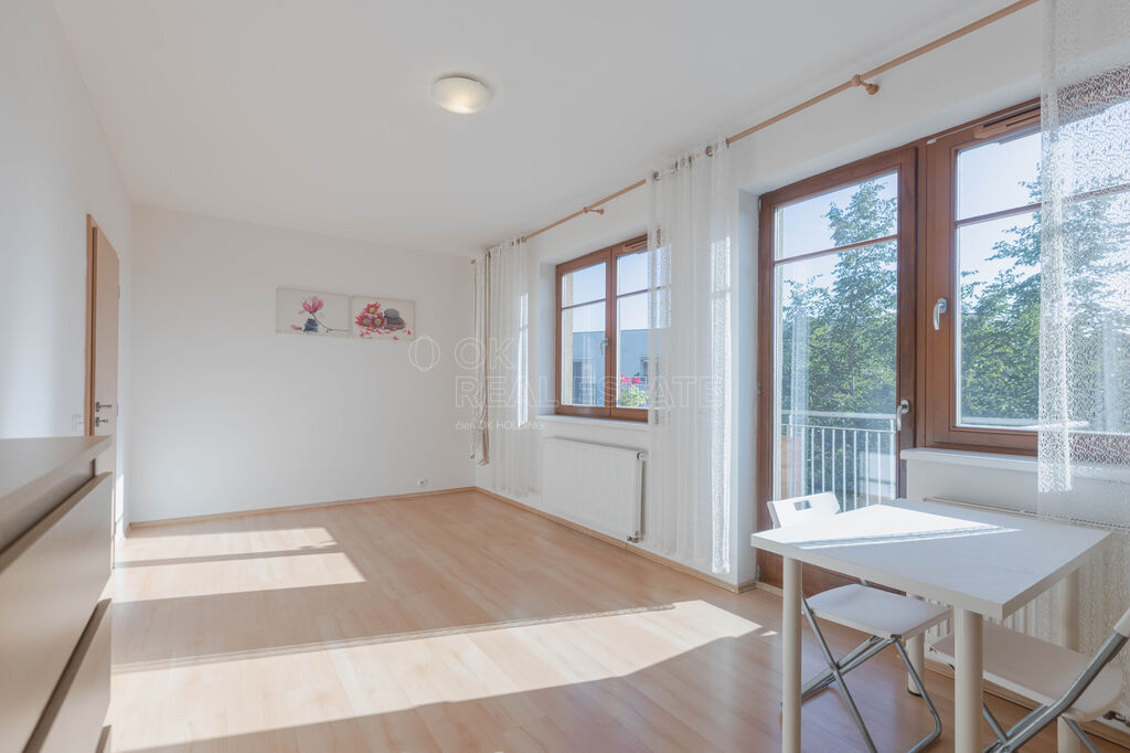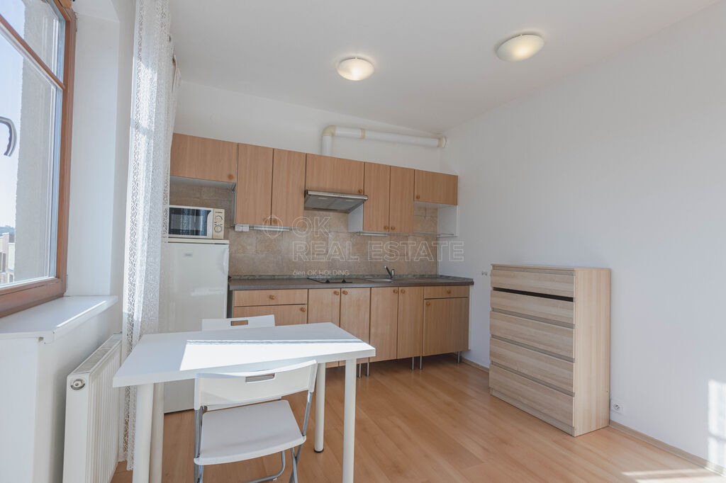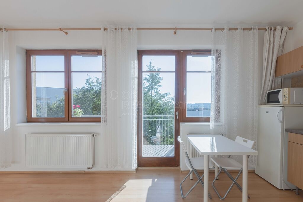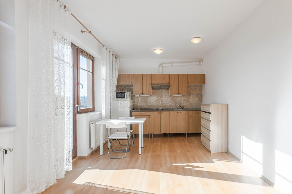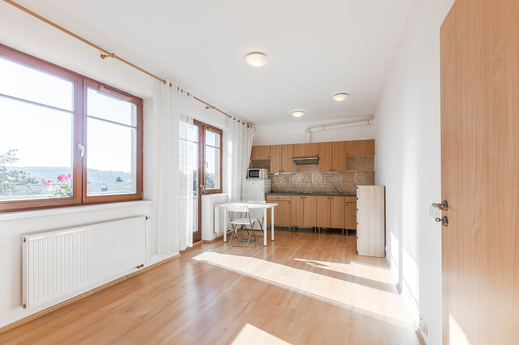 Prodej světlého bytu 1+kk s prostorným balkonem a výhledem na Prahu, ul. Vladycká, Hostivař