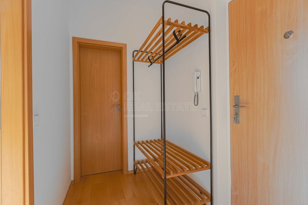 Praktická komora přímo v bytě poskytující další úložný prostor. Okna bytu jsou do vnitrobloku.