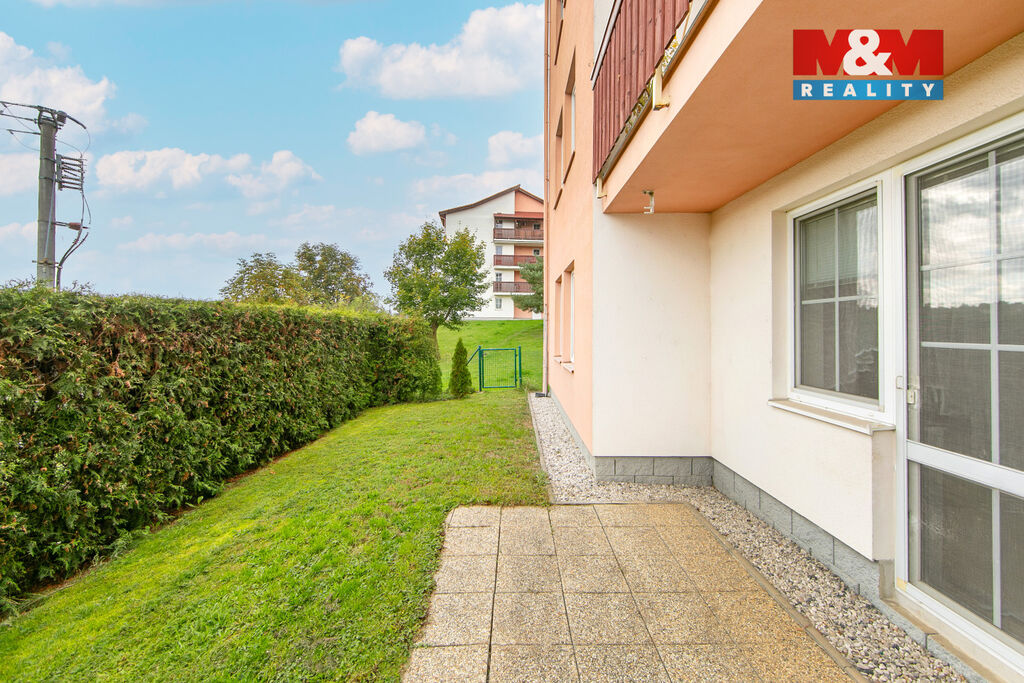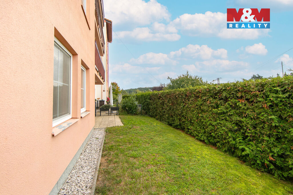 Byt se nachází v přízemí cihlového domu s předzahrádkou, sklepem. Předzahrádka náleží pouze k bytu o velikosti 48 m² . Byt částečně vybaven, kuchyňská linka - jídelní stůl, pracovní stůl, vestavěné skříně v předsíni, šatna, dětský pokoj - skříně, postele, psací stoly, TV, ložnice - postel, vestavěné skříně.