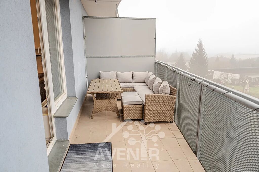 Exkluzivně vám nabízíme ke koupi velmi pěkný slunný byt 1+kk se spací zónou, velkou balkonovou terasou, garážovým stáním a venkovním parkovacím stáním.