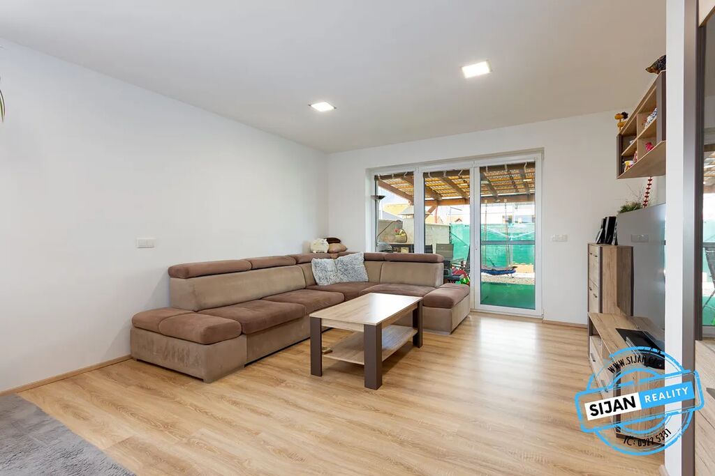 Srdcem domu je prostorný obývací pokoj s jídelnou a moderní kuchyní Oresi, odkud je přímý vstup na zastřešenou terasu. Tři neprůchozí pokoje zajistí soukromí každému členovi rodiny. Koupelna je vybavená jak vanou, tak sprchovým koutem, WC je samostatné. Praktická chodba a technická místnost usnadní každodenní provoz domácnosti.