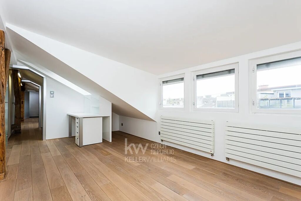 Dominantou bytu je terasa o velikosti 23 m², orientovaná do tichého vnitrobloku – ideální místo pro relaxaci. Menší terasa (cca 8 m²) se nachází o patro výš a nabízí výjimečný panoramatický výhled na Pražský hrad.