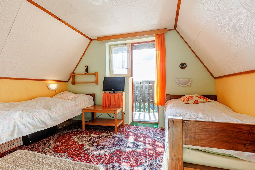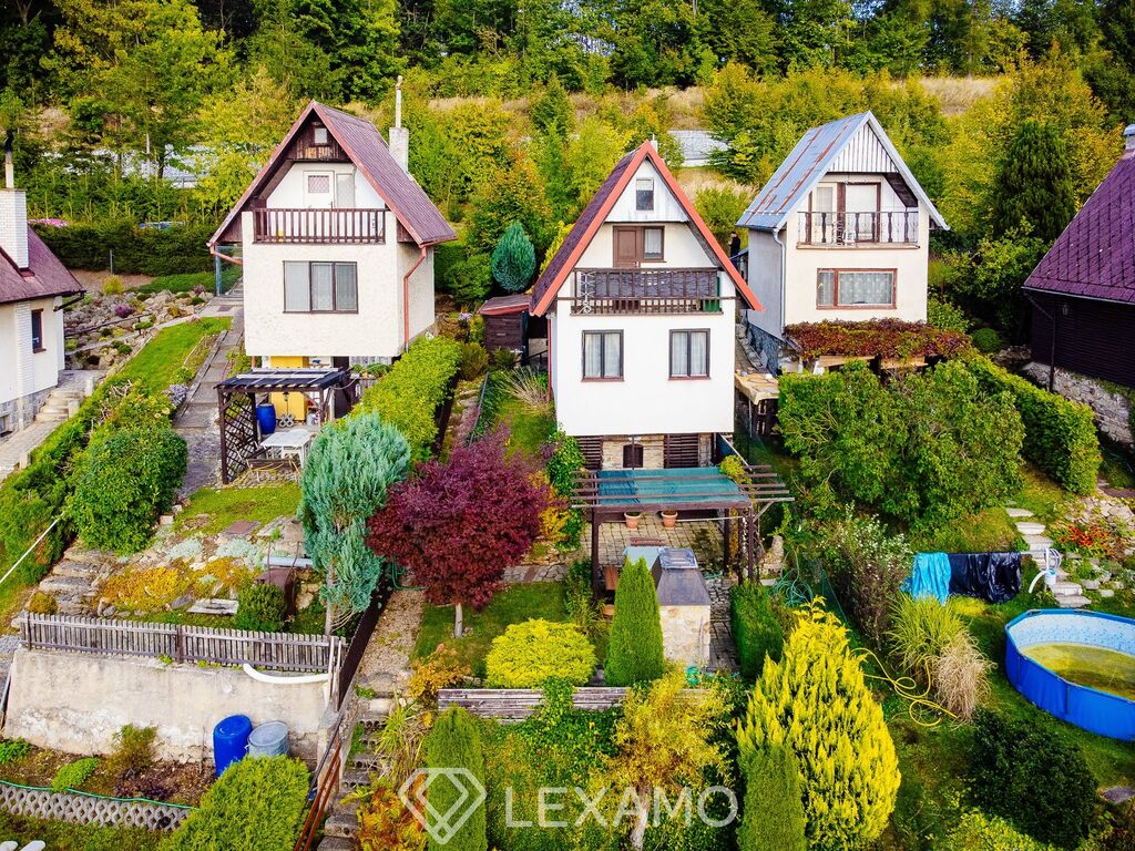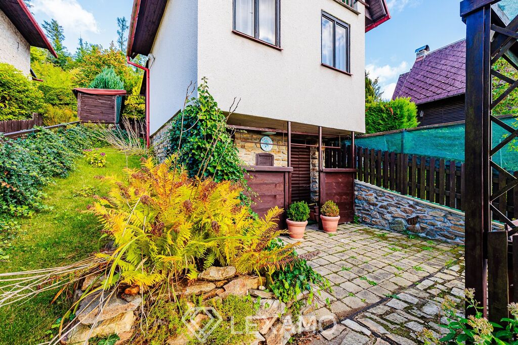 Chata stojí na svažitém pozemku o rozloze 375 m² a nabízí veškeré potřebné zázemí. V přízemí se nachází kuchyně a obytný pokoj, v podkroví pak další obytný prostor se vstupem na balkon s krásným výhledem do krajiny. V suterénu je koupelna se sprchovým koutem, toaleta a úložný prostor.