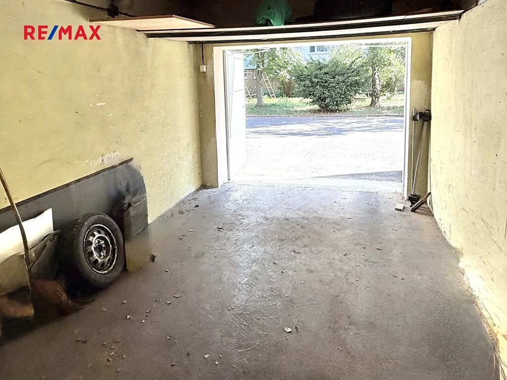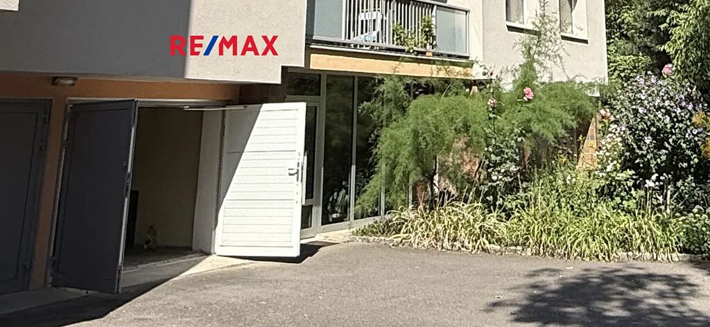Současně s bytem se prodává garáž umístěná přímo v domě - v garáži jsou vrata s bezpečnostním zámkem a do garáže je zavedena elektřina, kde lze nabíjet auto. Před garáží je možno parkovat další vlastní vůz.