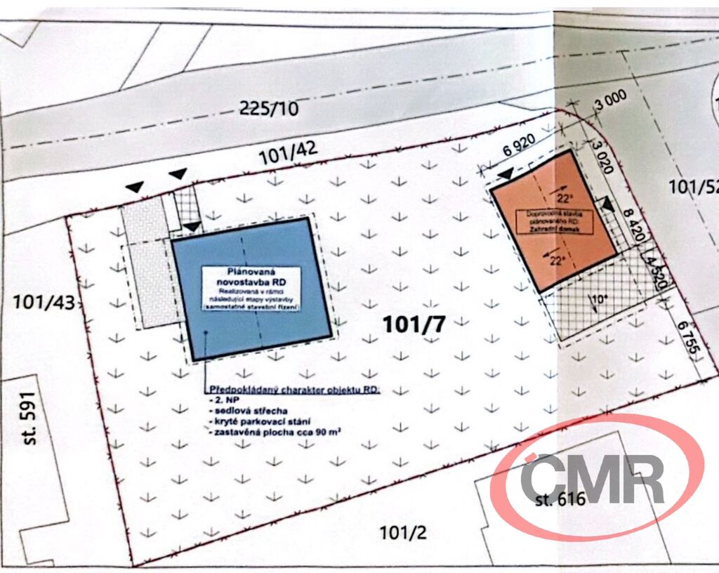 Zajímavá nabídka prostorného stavebního pozemku o rozloze 1022 m2 situovaného v lukrativní, vyhledávané lokalitě v těsné blízkosti Prahy, P-západ, Řitka. Pozemek je dle územního plánu určený pro stavbu RD, který je naplánovaný v zadní části zahrady. Součástí pozemku je zděná stavba zkolaudována jako zahradní domek ( 2023 ), dispozičně řešená 2+kk o zastavěné ploše 58,27 m2. Skládá se z obývacího pokoje s kuchyňským koutem se vstupem na terasu se zahradním posezením, dále je zde samostatný pokoj, koupelna s vanou společná s WC a chodba se vstupem na úložnou půdu. Kuchyňská linka je vybavena veškerými spotřebiči. V celém domě je podlahové vytápění + klimatizace, ohřev vody bojlerem 50 l. Pozemek je kompletně zasíťovaný, voda z obecního řádu + nádrž na dešťovou vodu cca 3 m3, odpady svedeny do kanalizace, plyn na hranici pozemku. RD naplánovaný v horní části zahrady má již nataženu vodu a odpady. Parkování řešeno zastřešenou pergolou u domu, dále je na pozemku ještě domek na uskladnění zahradních věcí. Pozemek je velmi pěkný, rohový, rovinatého charakteru s celoročně dostupnou asfaltovou komunikací. Velkou výhodou je možnost užívání domku, který je plně obyvatelný a poskytuje veškeré pohodlí po dobu výstavby nového RD. Pozemek je také vhodný pro investiční záměry. Jedná se o velmi pěkné místo v klidné ulici v zástavbě rodinných domů. Další výhodou je výborná dopravní dostupnost do Prahy, zastávka busu cca 2 min chůze, autem cca 12 km na rozhraní Prahy - Zbraslav - 10 min autem. Vřele doporučuji prohlídku!
