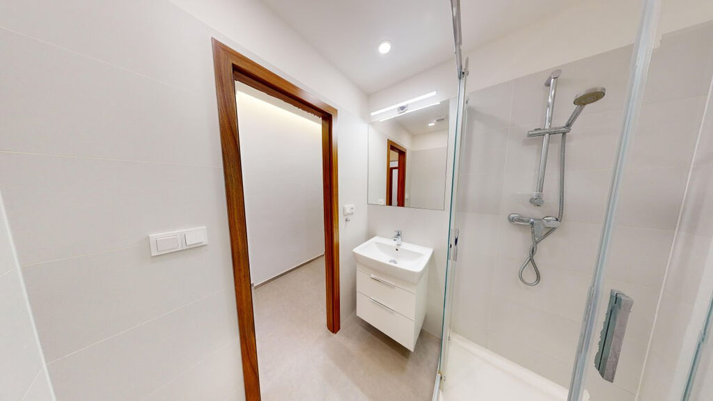 Byt disponuje balkonem. V koupelně se nachází sprchový kout, umyvadlo a zrcaldo. V bytě je vinylová podlaha. Dům je kompletně zateplený a vytápění zajišťuje plynové vytápění s radiátory. WC je samostatné.