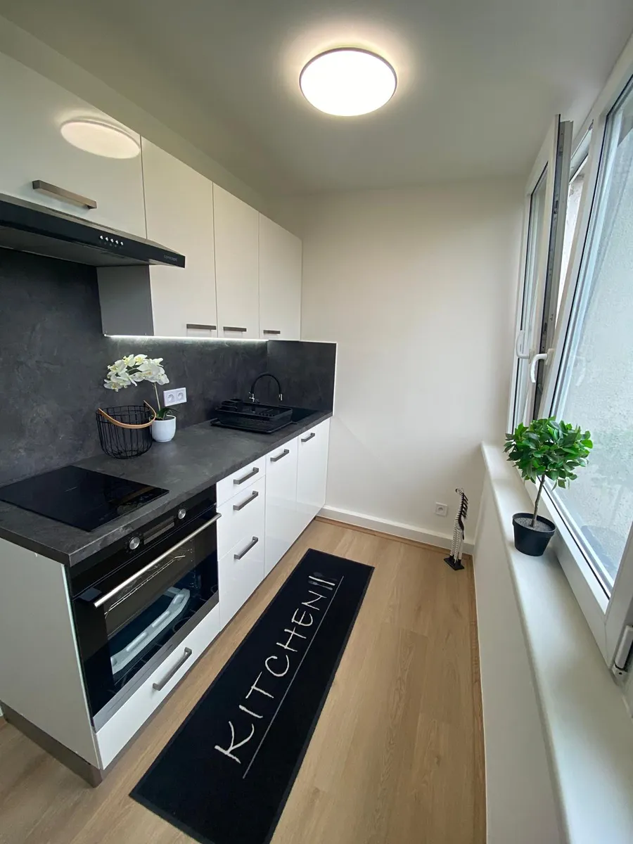 Byt 1+kk, 30 m2 se nachází ve 3.NP/z 8.NP, součástí bytu je komora, která je umístěna ve spojovací chodbě o patro výše, k užívání pro tři byty je lodžie (7 m2) naproti bytu. Byt prošel náročnou kompletní rekonstrukcí dle dnešních moderních trendů, bylo vyměněno a obnoveno úplně vše (veškeré rozvody - voda a odpady v plastu, elektrorozvody v mědi s certifikací, rozveden internet, stropní bodová světla, stropní LED světla na dálkové ovládání, nový topný radiátor, plast. okna, interiérové dveře v pojízdné liště, vstupní dveře, komplet přestavěna koupelna a WC, podlahy - dlažba a vinil, nová kuchyňská linka s vestavěnými elektrospotřebiči). Dispozice bytu: vstupní chodba, vpravo vybudován prostor pro velkou vestavěnou šatní skříň, vlevo vstup do koupelny dveřmi v pojízdné liště, zde je umístěn sprchový kout, WC, skříňka se zapuštěným umyvadlem a zrcadlem, vedle příprava pro pračku. Z předsíně vstupujeme do velkého prostoru pokoje, který je rozdělen na zónu spací a obývací, kolem dokola zásuvky + internet. připojení. Pokoj je otevřen do kuchyně, která je vybavena novou kuchyňskou linkou v šedobílém designu se zabudovanými elektrospotřebiči a LED podsvícením. Byt je atypický tím, že přes celý pokoj i kuchyň jsou instalována okna směrem na JZ, tudíž je byt velmi světlý. Promyšlený interiérový potencionál uspokojí i nejnáročnější zájemce. Byt je laděn do světlých tónů, které mu dávají vzdušnost, neboť bílá linie prostor opticky rozšiřuje. Úkolem bylo vytvořit novou koncepci zcela vybydleného bytu na komfortní, což se podařilo. Měs. poplatky 3 205 Kč (FO 690 Kč, správa 168 Kč, vodné stočné 400 Kč, teplá voda 780 Kč, popelnice 100 Kč, spol. el. 25 Kč, pojištění 30 Kč, odměna v. 180 Kč, teplo 601 Kč, úklid 85 Kč, výtah 70 Kč, provoz 76 Kč). Parkování v modrých rezidenčních zónách u domu. Byt je vhodný nejen k vlastnímu bydlení, ale rovněž i k lukrativnímu pronájmu.