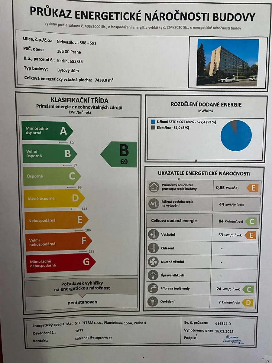 Bytový dům prošel z velké části revitalizací (zateplená fasáda, rozvody vody a odpady, elektroinstalace, výtah, střecha, plastová okna, vstupní vestibul, jako poslední se nyní připravuje rekonstrukce lodžií). Nádherné a klidné místo v zeleni parků s možností procházek k Vltavě na Rohanském nábřeží. PENB: třída B (velmi úsporná).