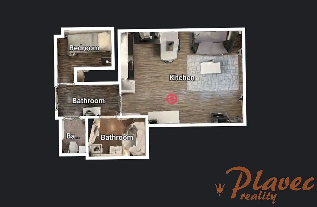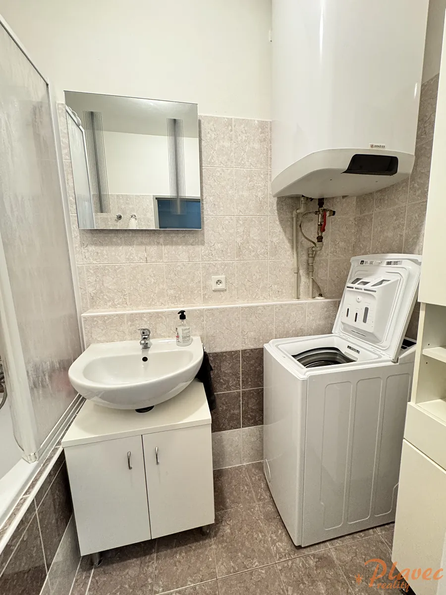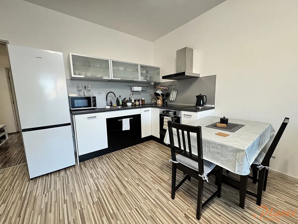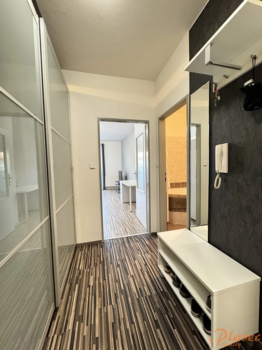 Díky oddělenému místu na spaní lze byt využívat částečně jako 2+kk (ložnice zvlášť a obývací pokoj s kuchyní zvlášť). Byt se nachází v 1. patře cihlového domu bez výtahu. Vybavení: kuchyňská linka s elektrickou troubou, lednicí a myčkou, dále jídelní stůl se 2 židlemi a vestavěná skříň v chodbě. V případě zájmu je možné si odkoupit úplně novou pračku se zárukou. Vytápění zajišťuje elektrický kotel v bytě a ohřev vody elektrický bojler.