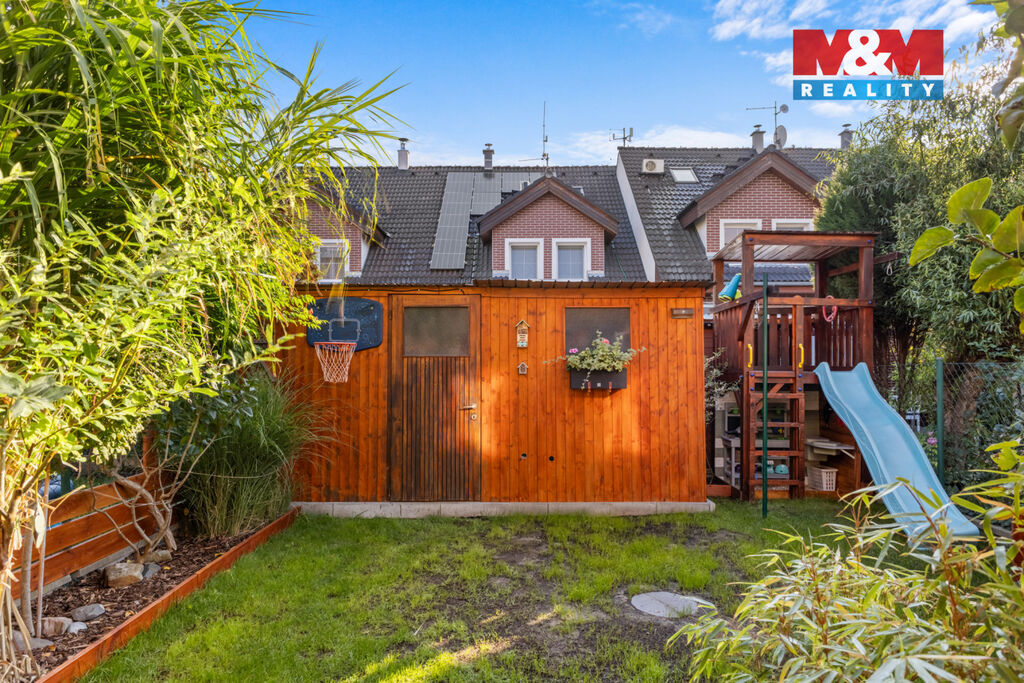 Nabízíme k prodeji rodinný řadový dům o dispozici 6+kk, situovaný v klidné části obce Lešany u Nelahozevsi. Tento cihlový třípodlažní dům je v perfektním stavu a nabízí komfortní bydlení pro rodinu s dětmi. Užitná plocha 157 m² poskytuje dostatek prostoru pro všechny členy rodiny. Nabízí 4 ložnice , prostorný obývací pokoj s koupelnou, pracovnu, kde je v tuto chvíli prostorná šatna, dvě koupelny, technickou místnost a špajz. Součástí prodeje může být i kompletní vybavení domu včetně luxusní vířivky. K domu náleží dvě parkovací stání a zahrada ve vnitrobloku orientovaná na východ, která zajišťuje příjemné proslunění. Pozemek má celkovou rozlohu 176 m². Tato nemovitost je ideální volbou pro klidné rodinné bydlení s veškerým komfortem. Neváhejte a přijďte se přesvědčit osobně!