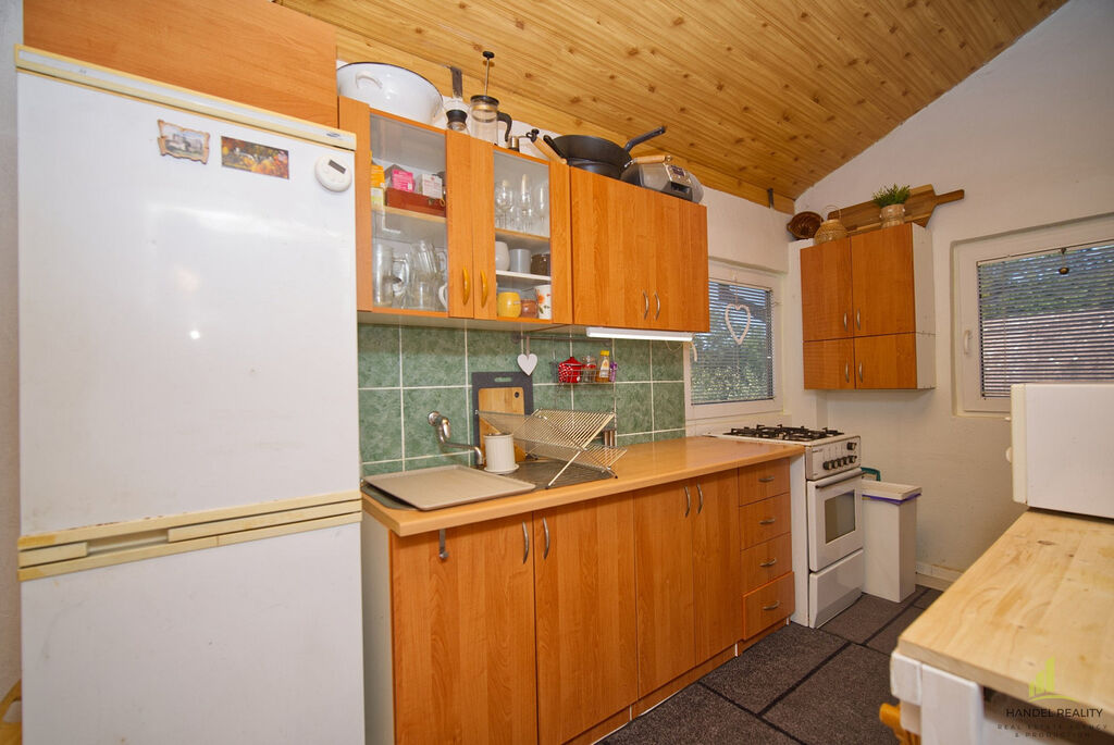 Chata dispozičně nabízí vstupní chodbu, kuchyňský kout, obývací a jídelní prostor, ložnici, koupelnu se sprchovým koutem a WC a také útulné spací mezipatro.