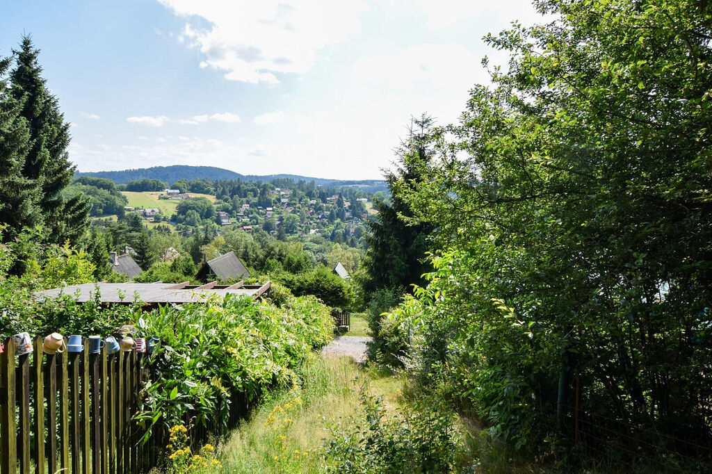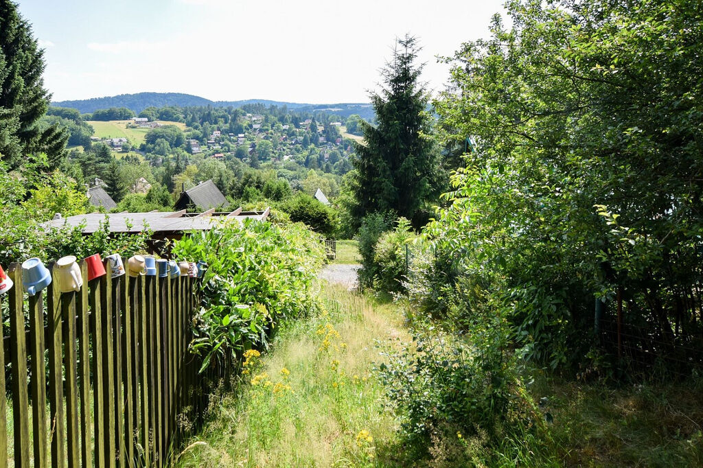 Zahrada je lehce svažitá, obdélníkového tvaru o výměře cca 17 x 60 m a ze dvou svých stran přímo sousedí s lesem.