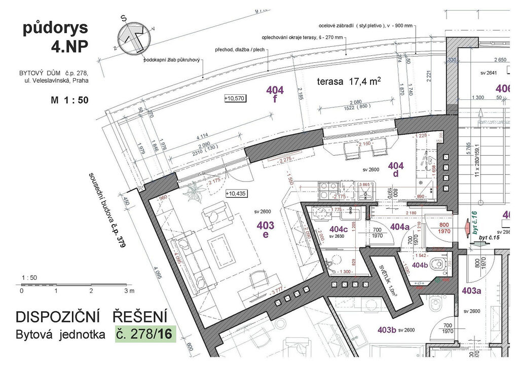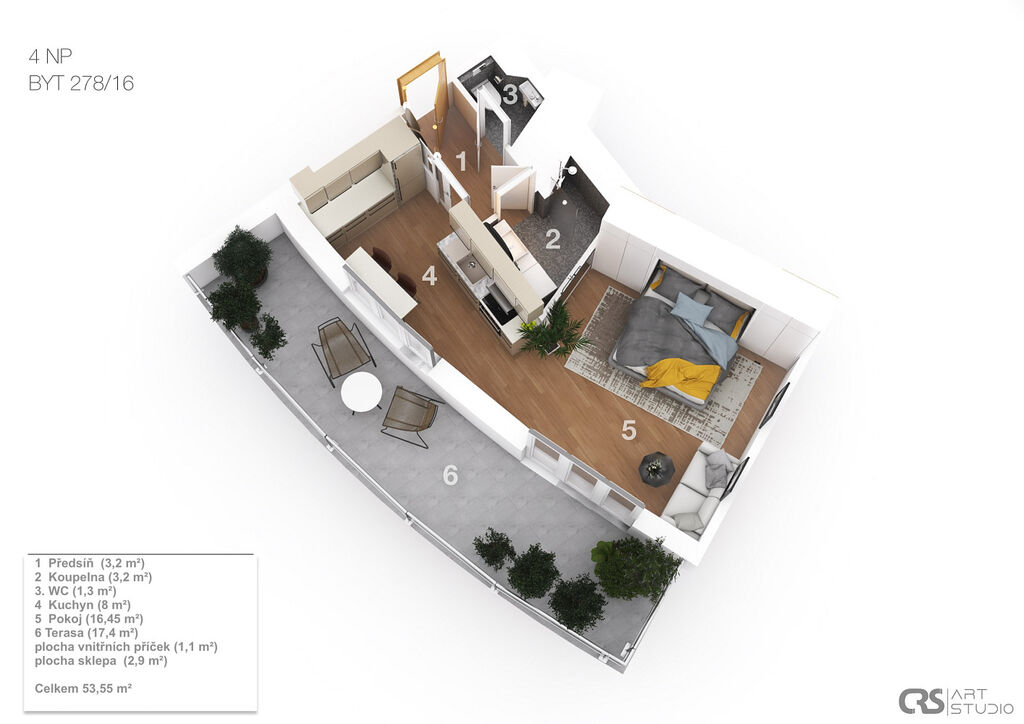 Podlahová plocha: 53,55 m² (včetně terasy 17,4 m²)