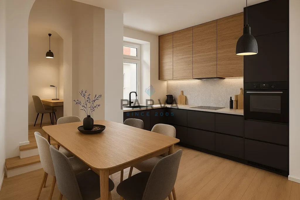 Celý objekt prošel kompletní a náročnou rekonstrukcí – z původní stavby byly zachovány pouze obvodové zdi. Veškeré konstrukce, rozvody i technické zázemí jsou nové a odpovídají současným stavebním a technickým standardům. V interiéru jsou položeny kvalitní lepené vinylové podlahy, osazeny české interiérové dveře a koupelna je vybavena moderní sanitou a zařizovacími předměty.
