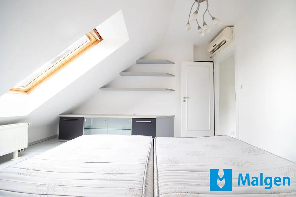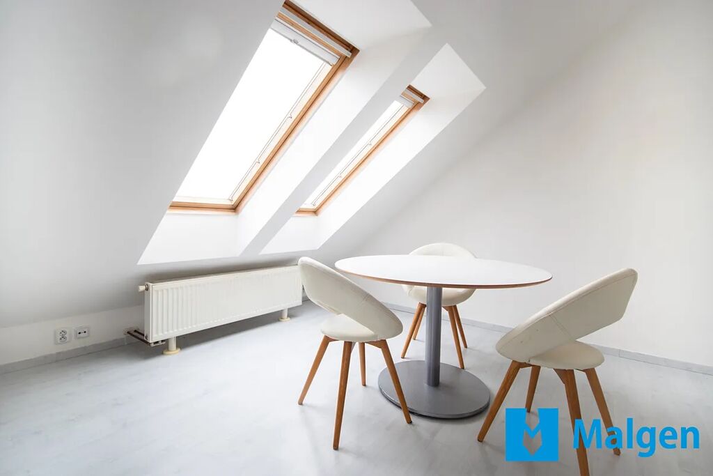 Exkluzivně nabízíme prostorný a světlý podkrovní byt o dispozici 3+kk s rozlohou 86,1 m2, situovaný ve 4. nadzemním podlaží v klidné lokalitě Malvazinky, Praha 5. Tento byt disponuje dvěma ložnicemi, obývacím pokojem s kuchyňským koutem, šatnou a jednou koupelnou s toaletou. Byt je částečně zařízen, zahrnuje skříně, postel a jídelní stůl. Součástí vybavení bytu je klimatizace a vlastní elektrický kotel.