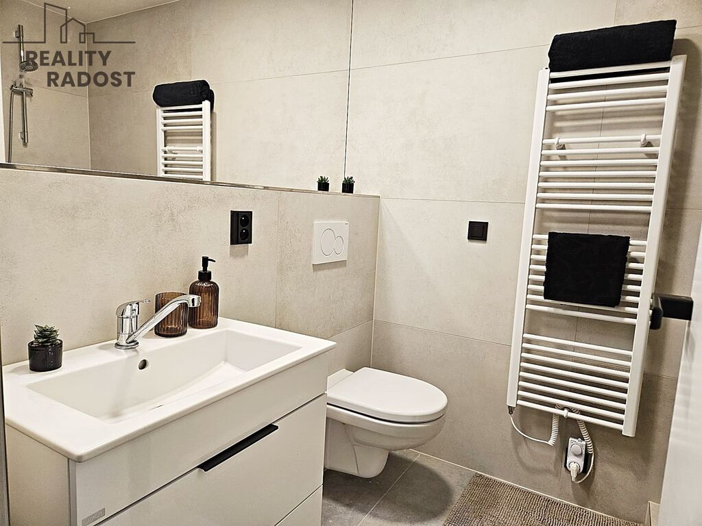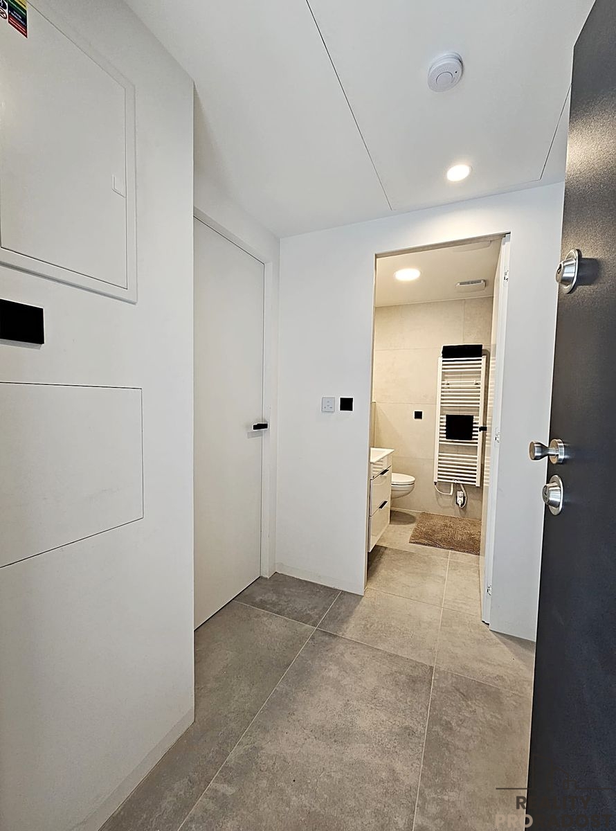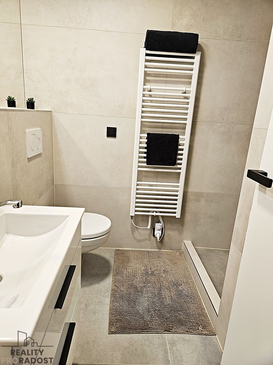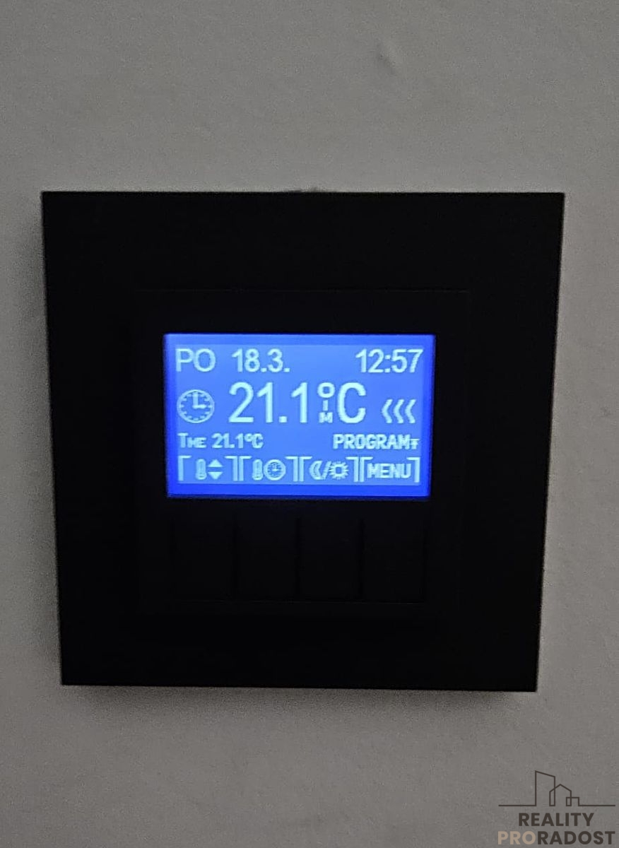 K dispozici je kancelář o výměre 40 m2 s možností přepažení na dvě místnosti, koupelna s prostorným sprchovým koutem, toaletou, umyvadlem a možností připojení pračky nebo myčky nádobí a vstupní chodba s možností vybudování úložných prostor. V celém prostoru je na podlaze keramická dlažba v dekoru imitace betonu s podlahovým elektrickým vytápěním. Přijemný detail kanceláře tvoři přiznané betonové stropy. Ohřev vody boilerem, rekuperace vzduchu. V kanceláři je kuchyňský kout. K přístupu na zastřešenou venkovní terasu slouží dvě francouzská okna v prostoru kanceláře. Při přepažení prostoru na dvě místnosti by byl zachován vstup na terasu z obou místností. Na všech oknech předokenní rolety.