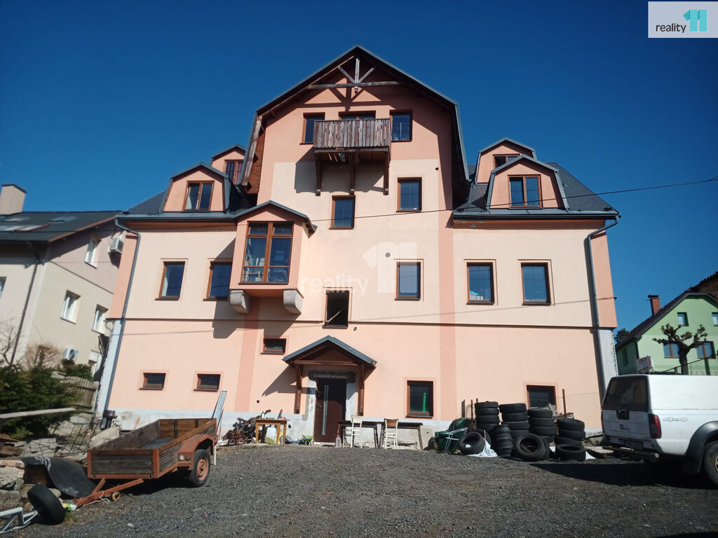 Prodej penzionu s ubytováním v Hejnicích. Cena nemovitosti je celkem 11 000 000 Kč. Kdy 8 milionů skládáte při přepisu nemovitosti a 3 miliony ve splátkách do tří let. V přízemí je vybudována restaurace před dokončením některých prací s možností přebudování na obchod nebo bytová jednota 3+1. V přízemí se dále nachází garsonka + jedna místnost současné době kancelář s možností předělání na recepci. Dále je zde velká chodba + pánské a dámské záchody, taktéž záchod pro vozíčkáře, záchod a umyvadlo pro kuchaře. Nad restaurací v 1. podlaží se nacházejí 3 byty o velikosti 1+1 . V podkroví se nachází apartmán o dispozici 4+kk, velikostně 110 m², apartmán má vlastní kotel a samostatné měření elektřiny a vody. Spodní tři patra mají jeden plynový kotel 300 l nádoba na ohřev vody, tu zajišťuje také plynový kotel. V celém objektu je oběhový systém teplé vody. Celý objekt je podsklepený 4,5 metru velikost do stropu. Ve dvou ohromných místnostech by šla vybudovat diskotéka a vinný sklípek, chráněná dílna. Jsou zde další 4 sklepy, kotelna, záchod, sprcha a úklidová místnost. Ze sklepa je východ na zahradu na odvrácenou stranu. Před budovou směrem k hlavní silnici je prostor pro vybudování prodejního stánku, který by byl uprostřed města. Budova byla postavena před 24 lety nově a proinvestováno 20 mil. Kč. Je to nejvyšší budova v centru města na lukrativním místě. Ev. číslo: 26814.