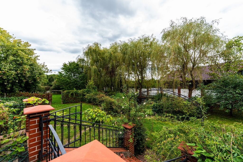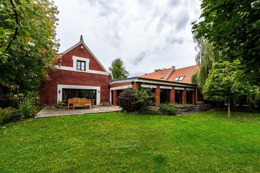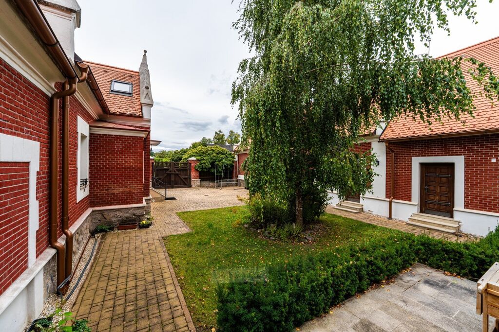 Pozemek – celo obezděný, vjezdové brány a vstupní vrata, 2 x příjezdové nádvoří, před zahrada s kovaným plotem a bránou do ulice, vnitřní nádvoří, zahrada se zatravněnou plochou a s ovocnými stromy, parková část zahrady s jezírkem, okrasné keře a rostliny, ovocné stromy, na všech zahradních plochách zavlažovací systém, samostatné vrty pro tepelná čerpadla, a vrt pro zavlažování a jezírko, šachty se systémem k zavlažování.