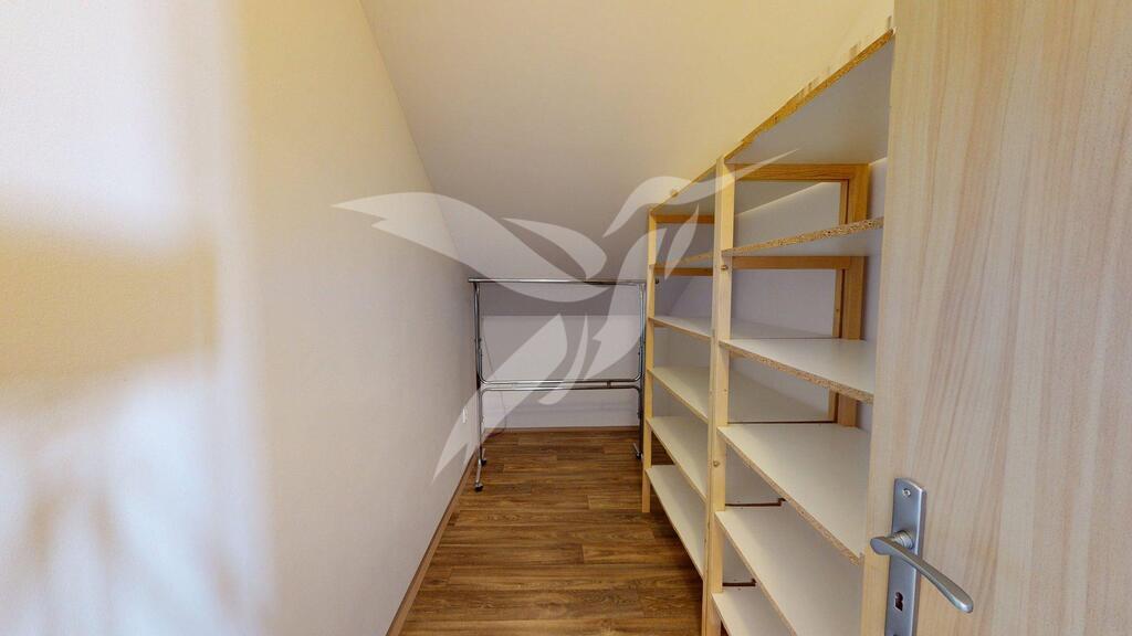 Představujeme pronájem krásného nového bytu o dispozici 3+1, se zahradou a parkovacím stáním. Nemovitost o velikosti 125 m2 se nachází v 1. patře rodinného domu na adrese Křižíkova, Nýrsko a skládá se z předsíně, samostatného pokoje vč. terasy, prostorného průchozího pokoje, samostatného pokoje, šatny, pokoje vč. kuchyňské linky, koupelny s toaletou a technické místnosti, dále je k užití zahrada, kde jsou i dvě parkovací stání. Byt se nabízí částečně zařízený, součástí je kuchyňská linka se spotřebiči, předsíňová stěna, regály v šatně. Teplo je zajištěno el. kotlem a teplá voda el. bojlerem. Elektřina se přepisuje na nájemce.