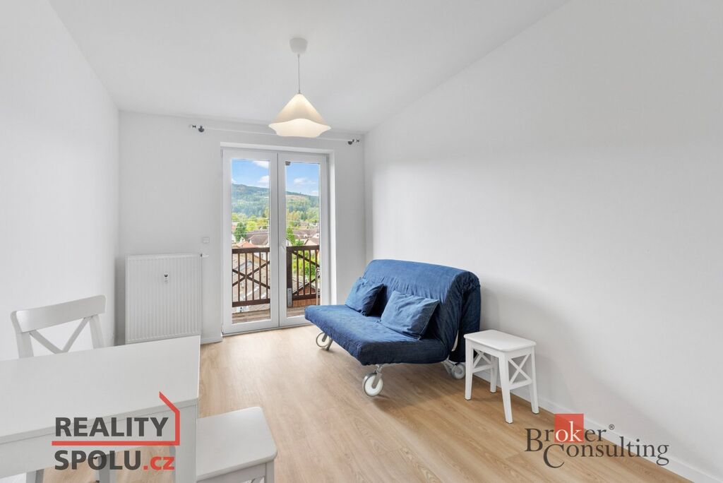 • Balkón je přístupný z obývacího pokoje i z ložnice, s okouzlujícím výhledem na Ještěd