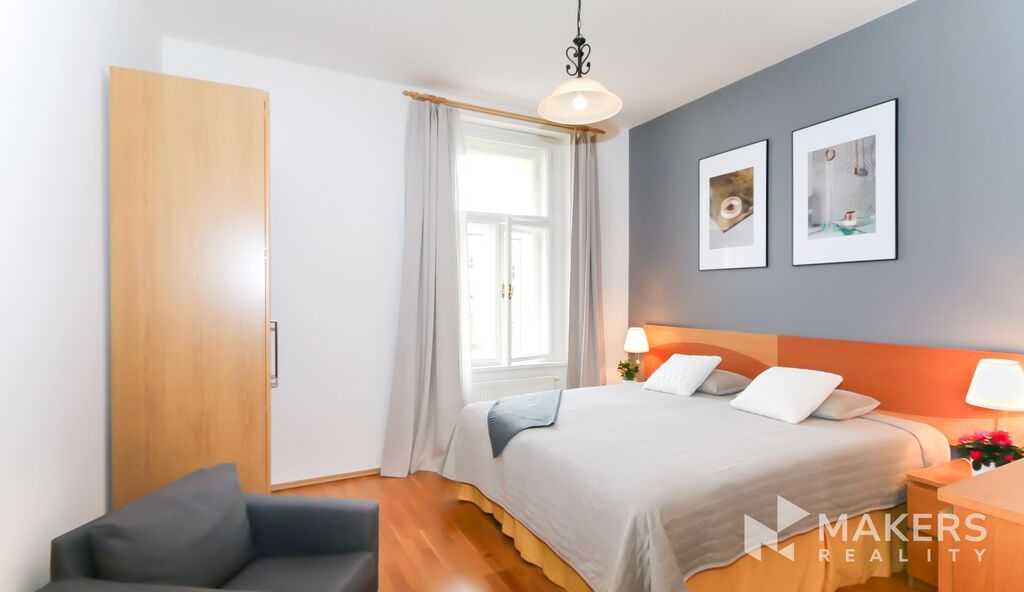 Nabízíme k dlouhodobému pronájmu krásný zařízení byt a velice útulný byt 3+kk o celkové ploše 80m2, který se nachází ve 4. patře cihlového doma v Sázavské ulici, Praha 2 - Vinohrady.