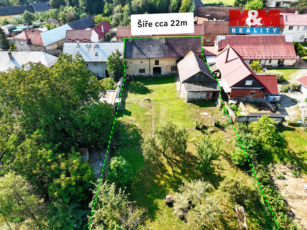 S šířkou cca 22 m na přední straně má pozemek dostatečnou šířku.