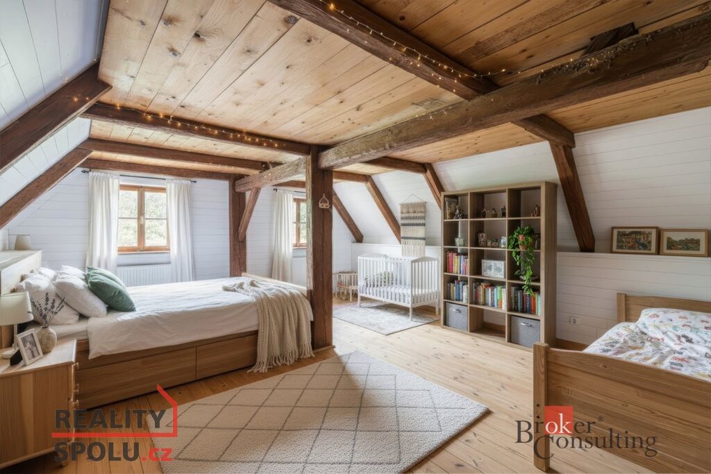 Rozsáhlé podkroví, ideální pro vestavbu pokojů či ateliér