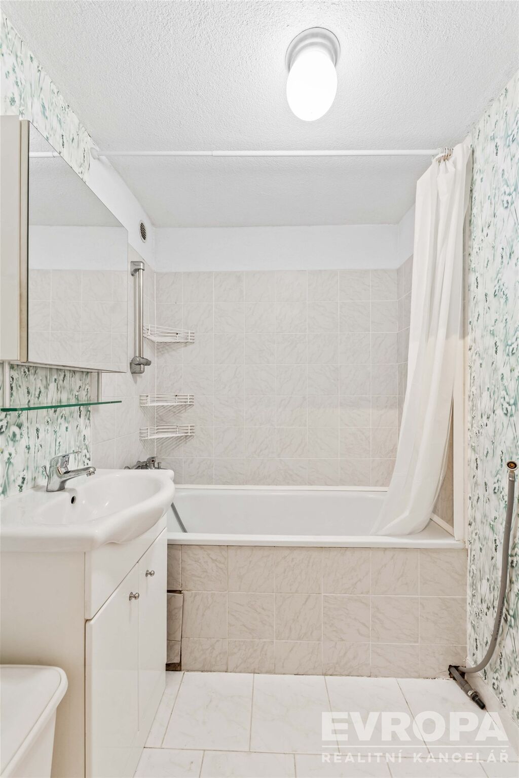 • Koupelna v původním, ale udržovaném stavu, vybavená novým umyvadlem, toaletou a vanou.