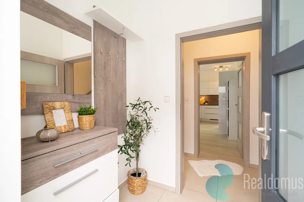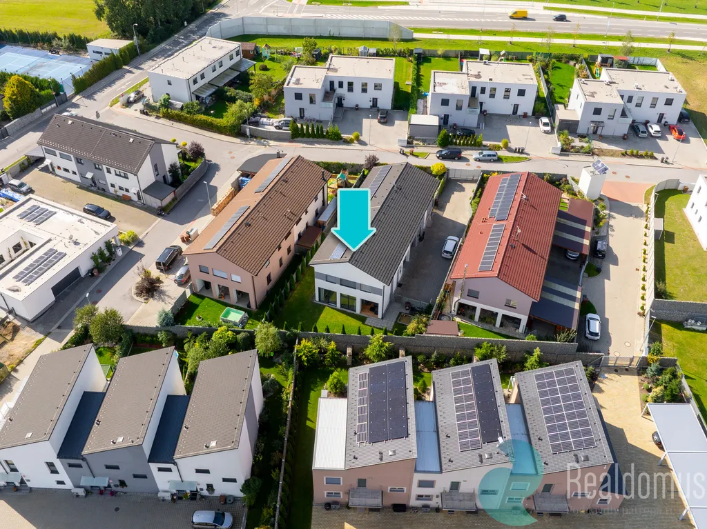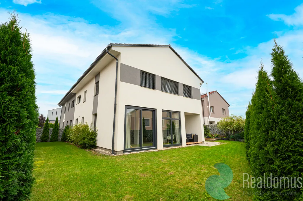 Tato elegantní luxusní stavba byla dokončena v roce 2019. Jedná se o polovinu dvojdomu (mezonetovou bytovou jednotku) o dispozici 5+kk s garáží, zahradou a terasou.