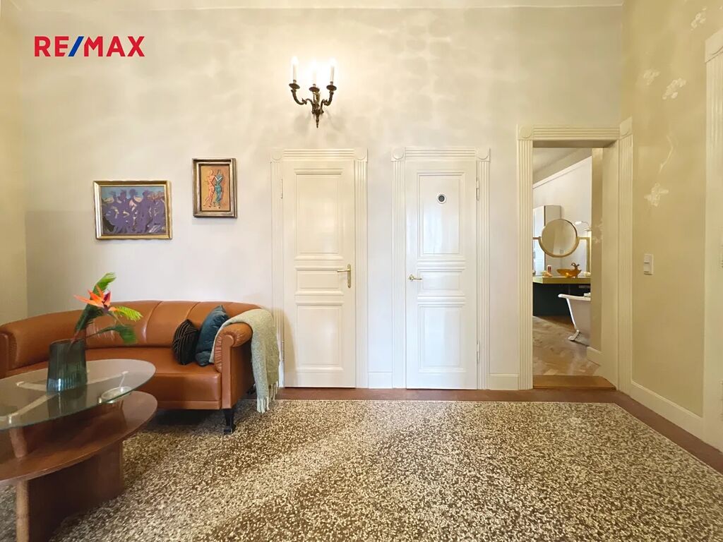 Byt nabízí dostatek úložného prostoru, vestavěné skříně a je připraven k okamžitému užívání. Každý den zde začíná jinak – ale vždy krásně. Obývací pokoj náramně spojuje historický půvab s moderním komfortem.