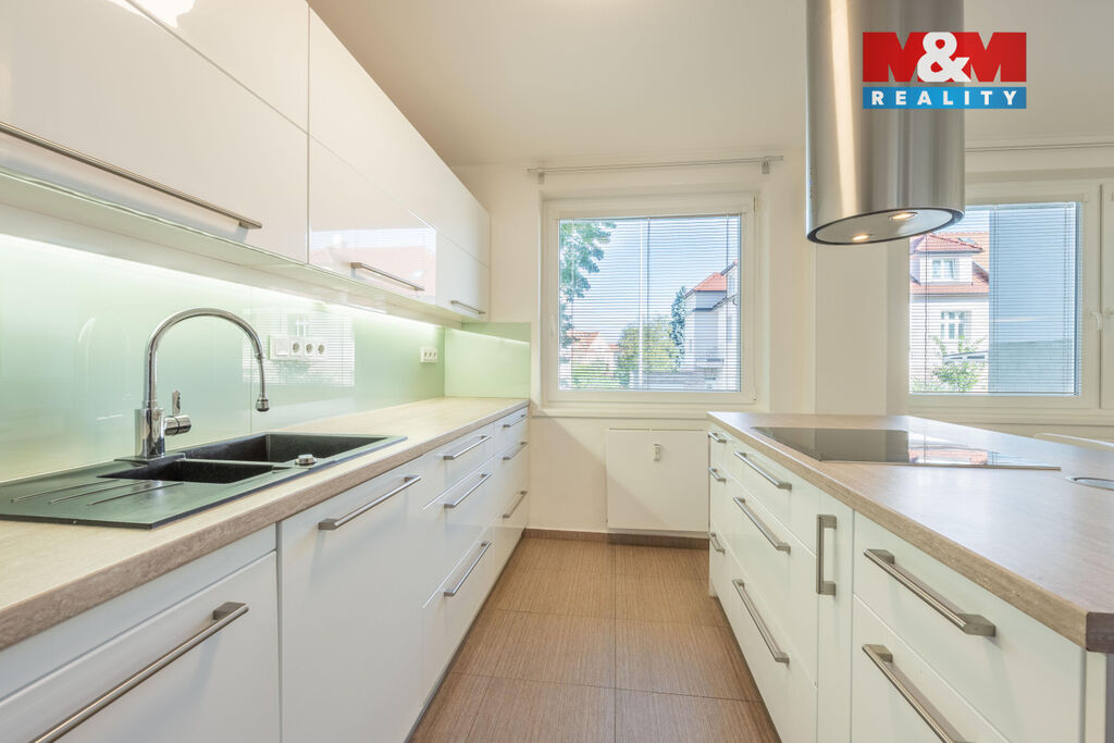 V exkluzivním zastoupení nabízíme k prodeji světlý a prostorný byt 3+1 o užitné ploše 99 m² ve známé pražské lokalitě Hanspaulka. Byt se nachází ve vyvýšeném 1. NP zatepleného cihlového domu s celkem 4. NP a 1. PP, kde se nachází sklepy, garáže a další zázemí domu, vč. společné zahrady. Tento krásný byt je po celkové rekonstrukci, je zařízený a takto připraven k okamžitému nastěhování. Majitelé si dali záležet na výběru kvalitních materiálů, spotřebičů a dostatku úložných prostor. Dispozice je prakticky řešena - prostorná kuchyň s jídelnou navazuje na obývací pokoj s lodžií, ložnice má samostatnou šatnu a vlastní lodžii. Dětský pokoj je světlý a prostorný. Stejně tak koupelna s kompletním zařízením a samozřejmostí je oddělené WC. Dům je klidný, udržovaný a SVJ aktivní. Byt má k užívání sklep. Hanspaulka, která patří mezi nejvyhledávanější pražské lokality nabízí prostředí plné zeleně, výbornou občanskou vybavenost i dopravní dostupnost. Pro termín prohlídky mne, prosím, kontaktujte.