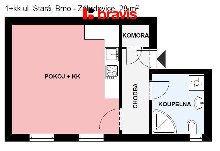Pronájem bytu 1+kk, Brno, Stará, 28 m2