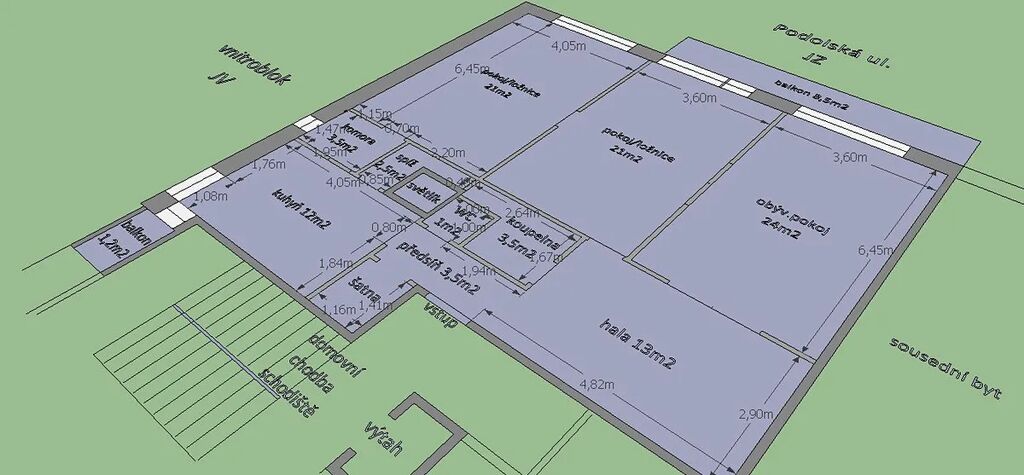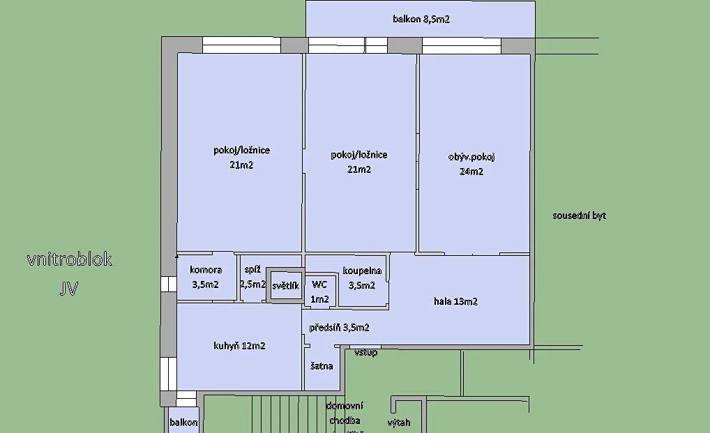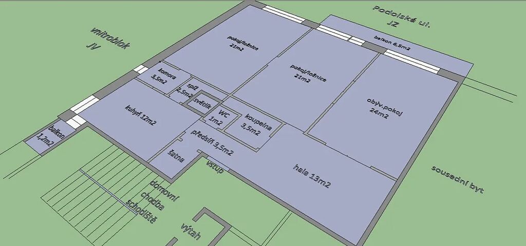 Pronájem zajímavě řešeného bytu 3+1, 115m², 5. patro v r. 2022 zrekonstruovaného zděného bytového domu z r. 1930. Výtah. Dva balkony. Dispozice bytu: ze vstupní předsíně se šatnou (3,5m²) je přístupná kuchyň (12m²) a prostorná hala (13m²) ze které je přístup do obývacího pokoje (24m²), do 2. pokoje/ložnice (21m²), do koupelny (3,5m²) a na toaletu (1m²). Třetí pokoj/ložnice (21m²) je přístupný z přes 2. pokoj. Ke kuchyni patří spíž (2,5m²) a menší balkon (1,2m²). Z obývacího pokoje resp. z 2. pokoje je přístupný balkon (8,5m²). Vytápění, včetně teplé vody zajišťuje nová domovní plynová kotelna. Dům byl v rámci rekonstrukce zateplený a proběhla výměna oken. V suterénu domu je k dispozici sklepní kóje a v přízemí dobře zajištěná místnost pro uložení dětských kočárků, kol apod.. V domě je instalováno elektronické zabezpečovací zařízení. Nabízený byt je k nastěhování od 1.11.2025. Klidná ulice. Světlý, slunný byt. Balkon a okna obývacího pokoje a 2x ložnice jsou situovány jihozápadním směrem do málo frekventované Podolské ulice, s pohledem do vrostlé zeleně a s mimořádně krásným výhledem na Vltavu, Vyšehrad, Malou Stranu a zejména na panorama Pražského Hradu. Dobré parkování - možnost parkování pro rezidenty P4 cca 1.200,-Kč/rok. Zastávka tramvaj "Kublov" cca 3min/180m. Podolský plavecký stadion cca 6min./350m.