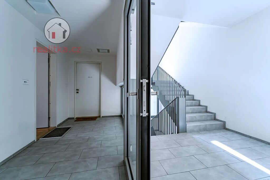 • Dveře: Interiér hladká dýhovaná s bílým nástřikem, obložkové zárubně. Vstupní dveře bezpečnostní, protipožární.
