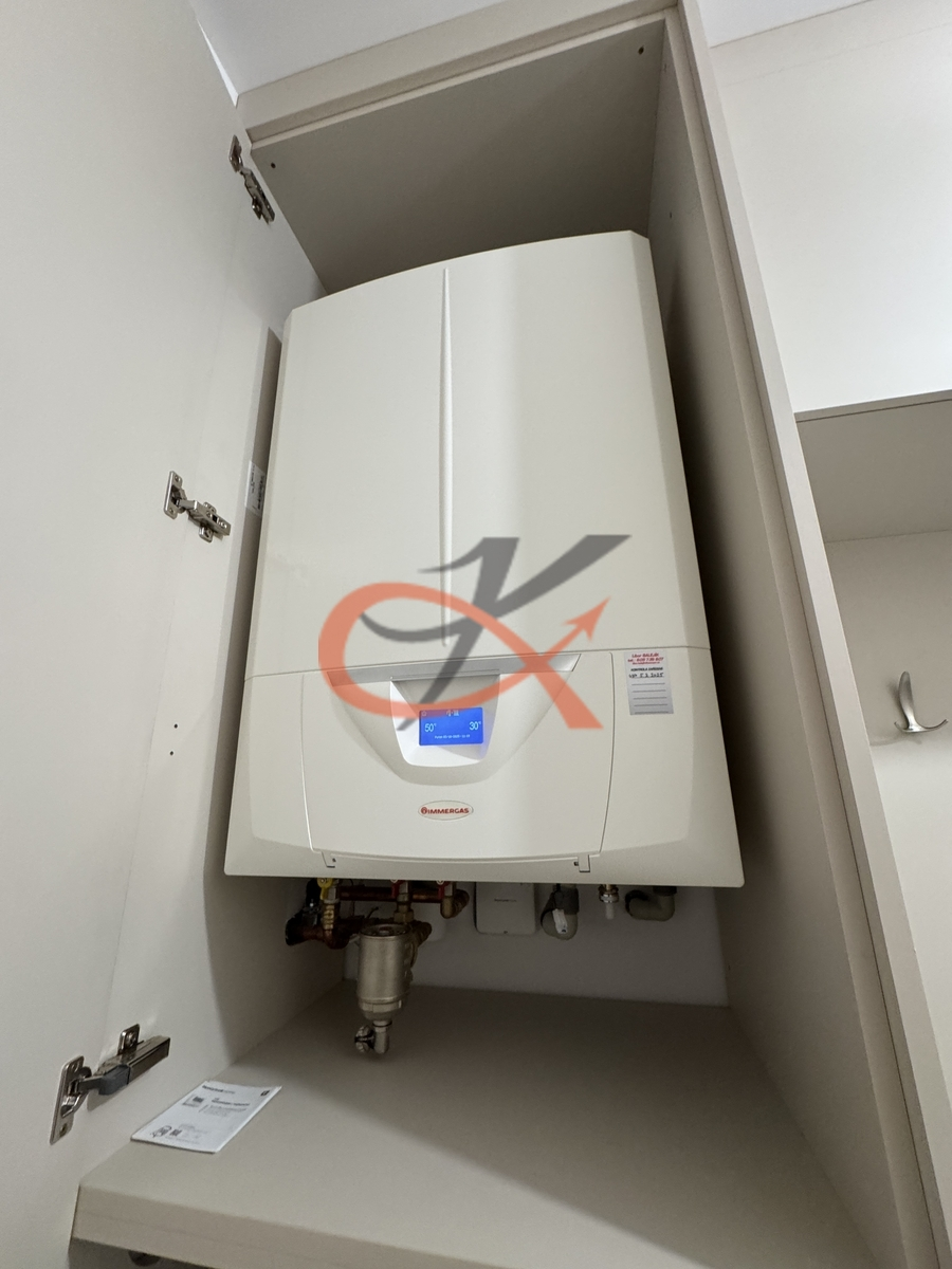 Byt disponuje podlahovým vytápěním, které zajišťuje příjemnou tepelnou pohodu po celý rok. V koupelně ještě navíc topný žebřík.