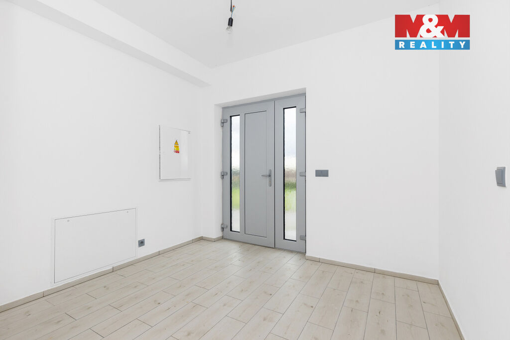 Nabízíme k prodeji novostavbu rodinného domu 4+kk v klidné části obce Srch. Ideální pro rodinné bydlení. Dům o užitné ploše 128 m². Plocha pozemku 376 m². Dispozice rodinného domu: v 1. NP vstup 10,09 m², technická místnost 6,33 m², toaleta 1,59 m², hala 5,64 m², obývací pokoj 28,47 m², kuchyňský kout 10,18 m², zázemí 1,23 m², schodiště 4,71 m², 2. NP podesta 5,47 m², 2x pokoj 11,23 a 12,22 m², koupelna 8,62 m² (rohová vana, sprchový kout), ložnice 17,47 m² a šatna 4,23 m². Podlahové vytápění pomocí teplovodních hadů. Pro vytápění a ohřev vody tepelné čerpadlo a příprava na fotovoltaickou elektrárnu. Okna jsou plastová (trojskla). Dům je zkolaudovaný. Jedná se o velmi úsporný dům. V obci se nachází mateřská a ZŠ, fotbalové a dětské hřiště a také obchod.