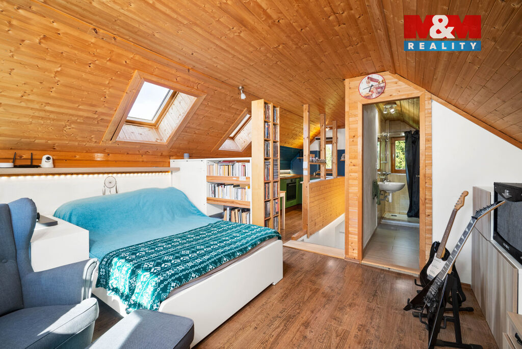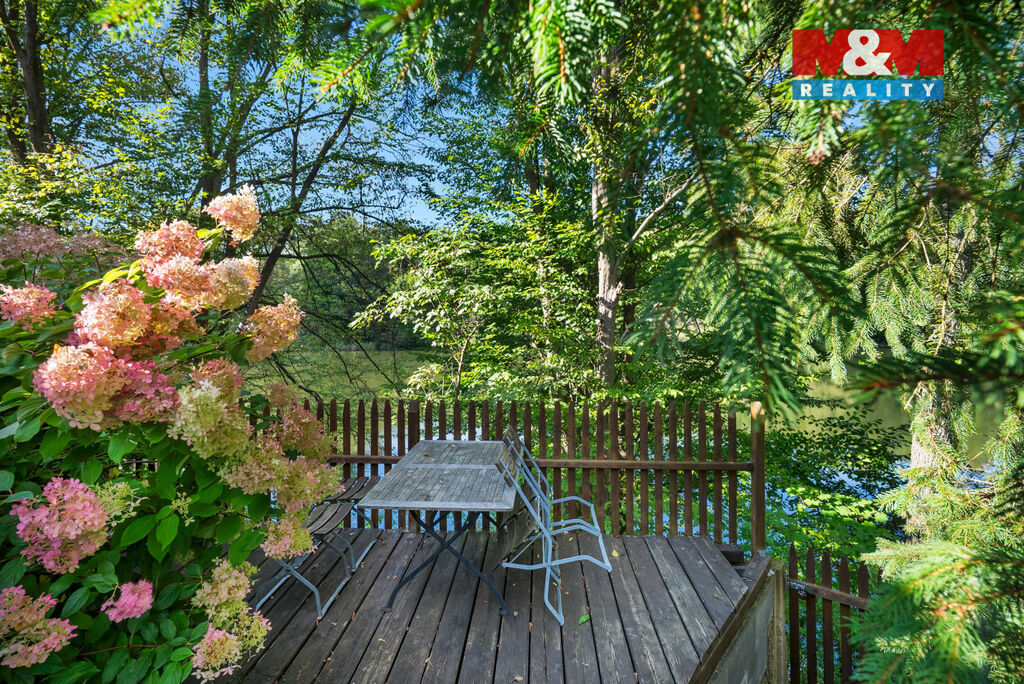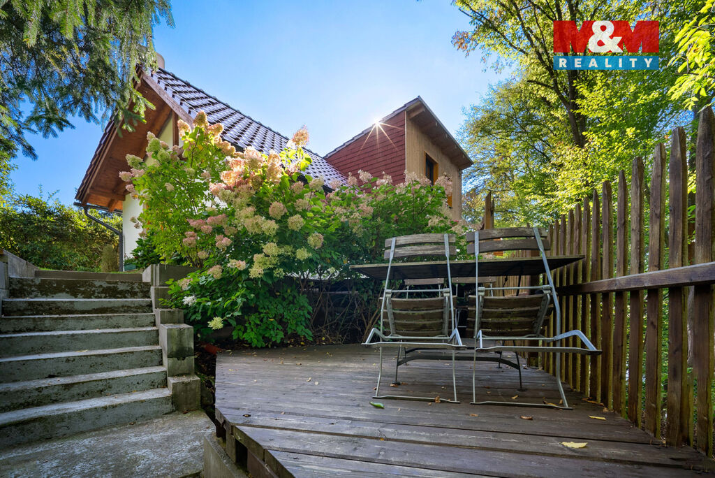 Na jedinečném místě nabízíme k prodeji celoroční chatu/rodinný dům, s velkým pozemkem o rozloze 1 804 m², která poskytuje naprosté soukromí a přímý kontakt s přírodou. Hlavní budova byla postavena v roce 2014 a nabízí pohodlné celoroční užívání. Součástí pozemku je také garáž, nad níž vzniklo moderní studio – samostatná bytová jednotka vhodná pro hosty, dospívající děti či jako prostor pro práci z domova. Celková užitná plocha obytných částí je 130 m².