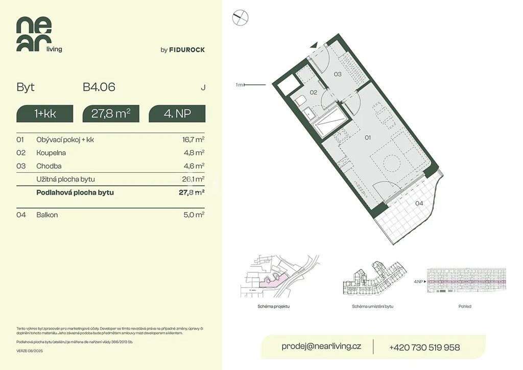 Nabízíme k prodeji byt 1+kk o podlahové ploše 27,8 m² s balkonem 5 m² v developerském projektu NEAR living v Praze 8, vznikajícím na pomezí Palmovky a Karlína.