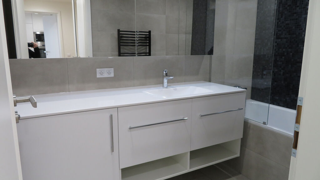 Velice prostorný rodinny byt (č. 409) o dispozici 3+1 s terasou v 4.NP v moderní budově přímo na metru B. Byt je kompletně zařízený, naleznete v něm veškerý nábytek a vybavení, a to i včetně nádobí či přikrývek! V koupelně vás jistě potěší příjemné podlahové vytápění. Moc pěkná terasa se speciálním stíněním a elektrickými venkovními žaluziemi. Samostatné WC s bidetem a vana! V obývacím pokoji velmi příjemné nepřímé LED osvětlení