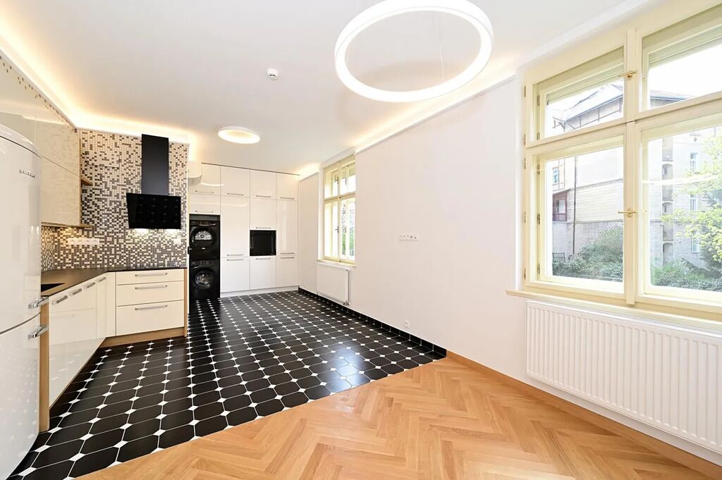 Bydlení s nádechem romantiky první republiky v historickém kontextu lokality. Velmi zdařilá rekonstrukce bytových jednotek činžovního domu, citlivá kombinace renovovaných původních prvků s moderním vybavením kuchyně a koupelny. Krásné dřevěné podlahy nebo dlažby, kvalitní kuchyňská linka se spotřebiči Gorenje. Okna vybavena elektrickými roletami. Variabilní osvětlení každé místnosti. K dispozici hezký čistý sklep.