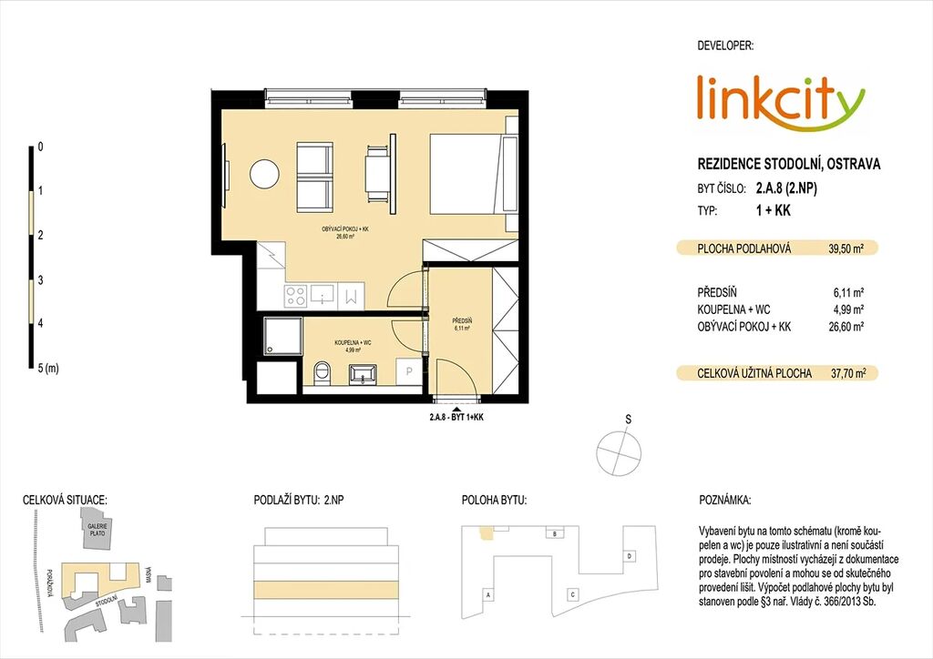 - dispozice 1+kk s 39,5 m2 podlahové plochy